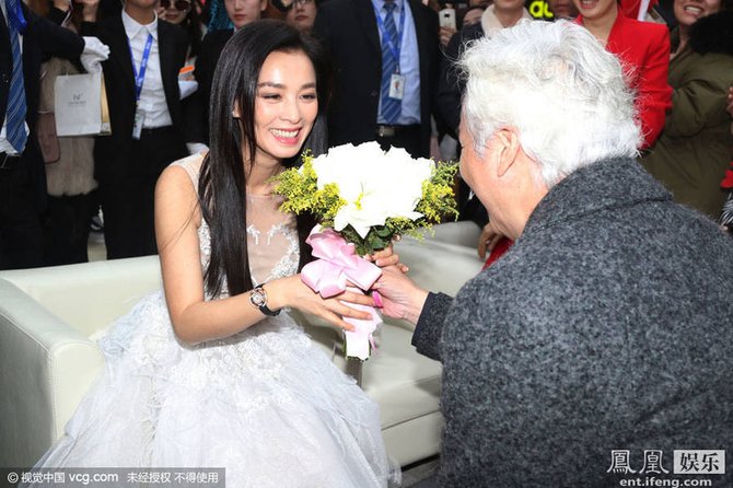 张庭接受捧花。